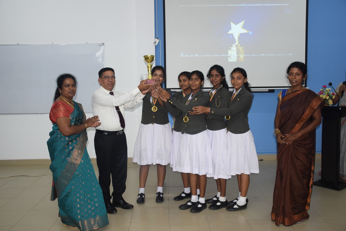 The competition was graced by the presence of Prof. V. Kanagasingam, Vice Chancellor of Eastern University, Sri Lanka, who served as the Chief Guest for the event. The participation of Dr. S. Jeyarajah, the Dean of the Faculty of Commerce and Management, Heads of the Department, professors, academics, school teachers, and enthusiastic students added to the intellectual enthusiasm of the event.